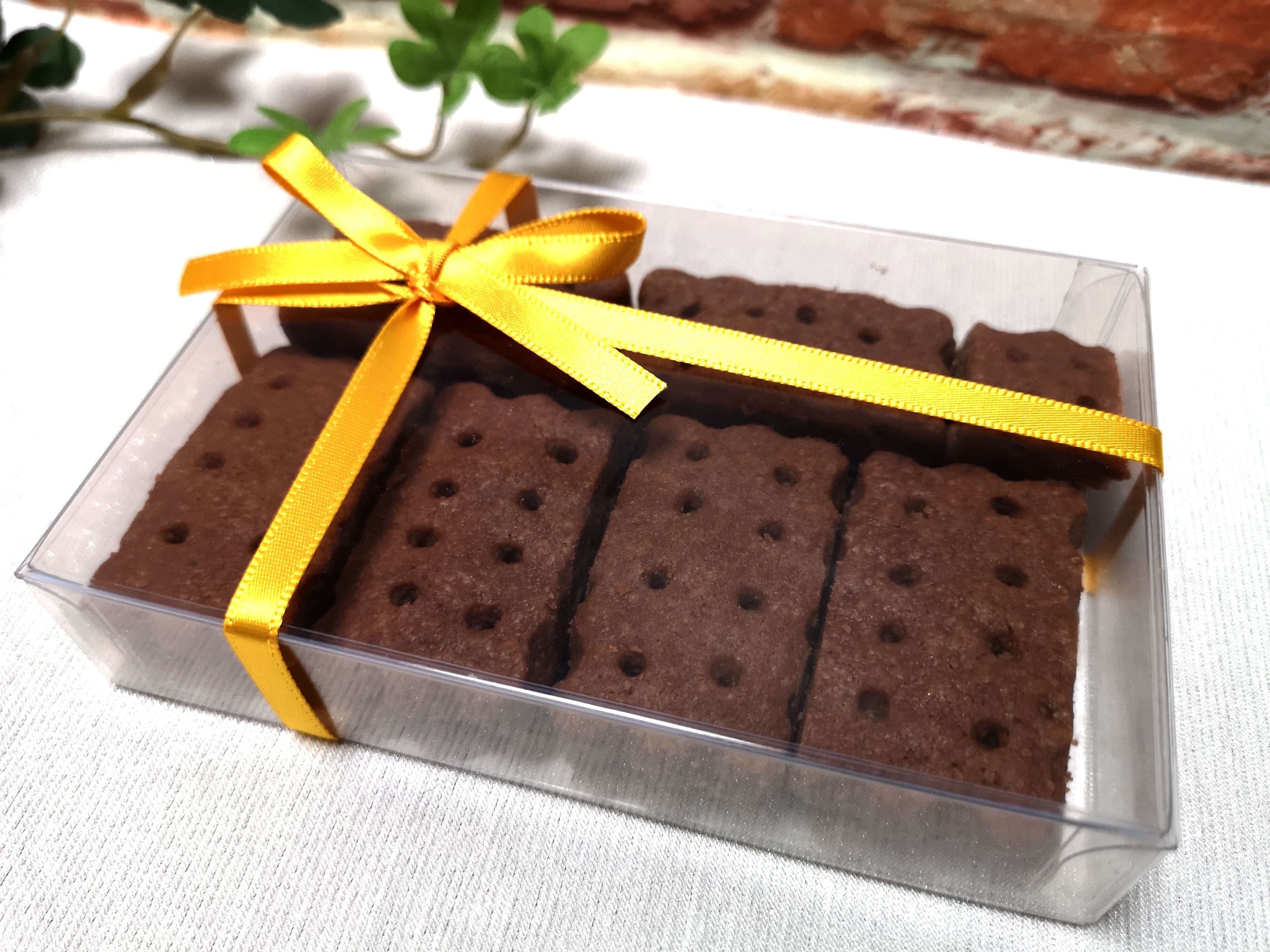 ショートブレッドココア味を、透明のBOXへ12個入れたセット商品です。
